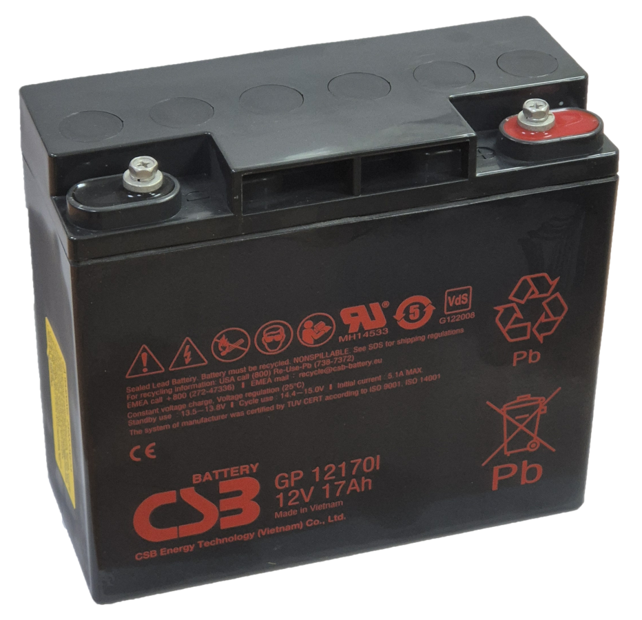 Артикул 2002 Производитель CSB Battery Серия GP серия Технология AGM Cрок службы ~ 5лет Напряжение, В 12 Емкость, Ач 17 Клеммы M5 Болт+гайка Типоразмер батареи (bat_type) 12_18 Длина, мм 181 Ширина, мм 76 Высота, мм 167 Полная высота, мм 167 Вес, кг 5.5 Гарантия, мес 12 Предоставленная информация об описании, технических характеристиках, комплекте поставки и внешнем виде товара носит справочный характер и может изменяться производителем без предупреждения. Заранее приносим извинения за возможные неточности и будем благодарны Вам за сообщение об ошибках. Уточняйте, пожалуйста, важные для Вас параметры при заказе.