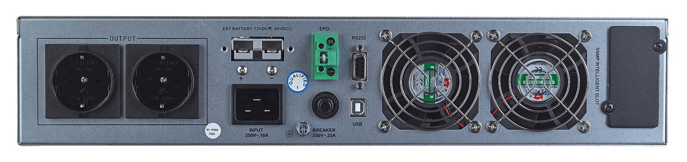 - Формфактор RM (2U) - ИБП устанавливается в стандартную 19"-и дюймовую стойку;