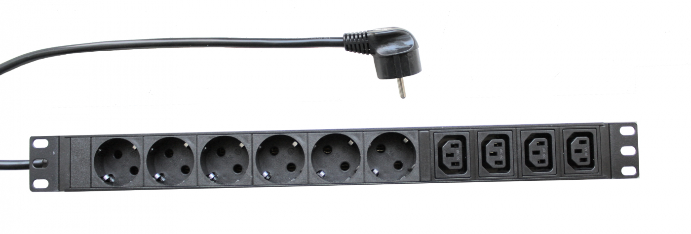 Блок розеток 19", 6 розеток Schuko, 4 розеток IEC 320 C13, 16А, кабель питания 1,8м с вилкой Schuko, RS19-6SH-4С13-16-2EU