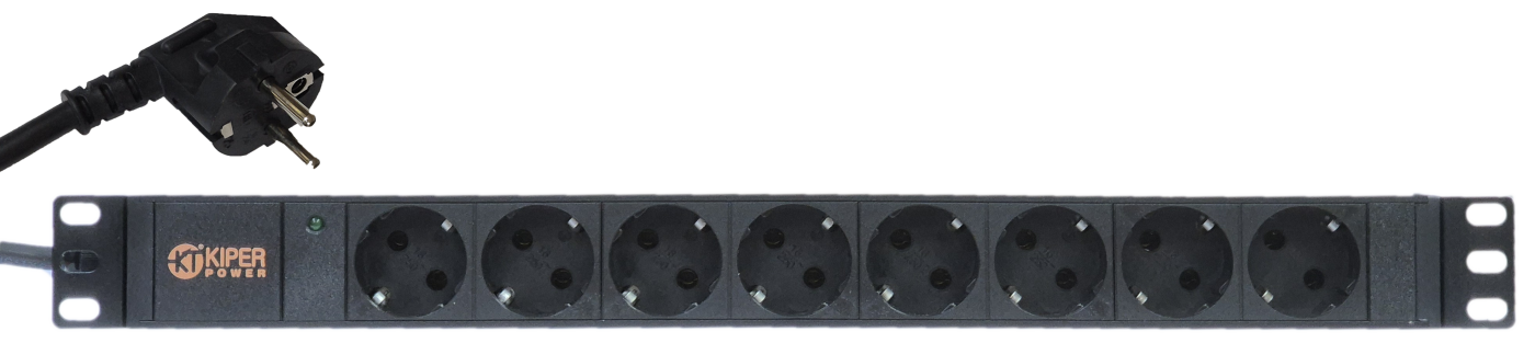 • картинка Блок розеток 19" Kiper Power, 8 розеток Schuko, 16А, кабель питания 2м с вилкой Schuko от Кипер Трэйд