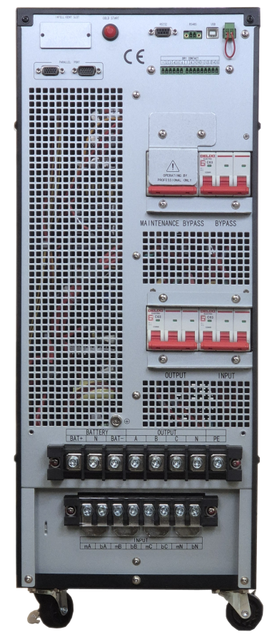 - Без встроенных батарей, подключение к внешним АКБ, от 28 до 44 шт., (от +/-168VDC до +/-264VDC), ток заряда от 1А до 10А