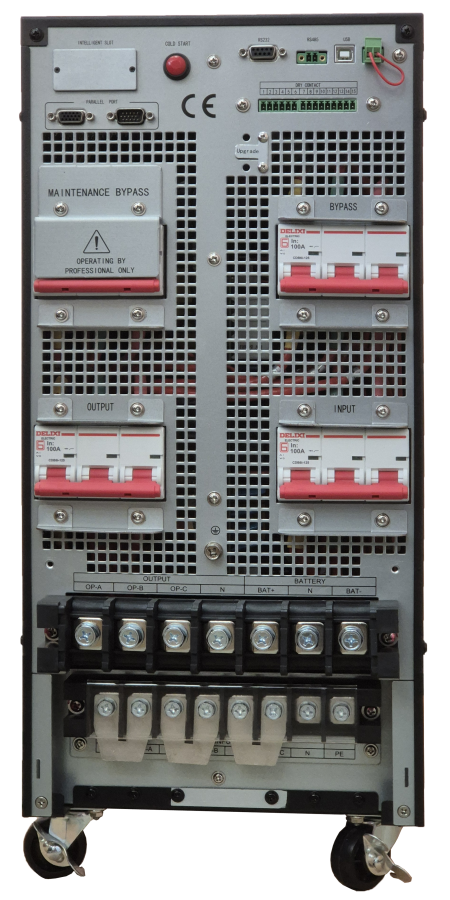 - Без встроенных батарей, подключение к внешним АКБ, от 30 до 44 шт., (от +/-180VDC до +/-264VDC), ток заряда от 1А до 15А