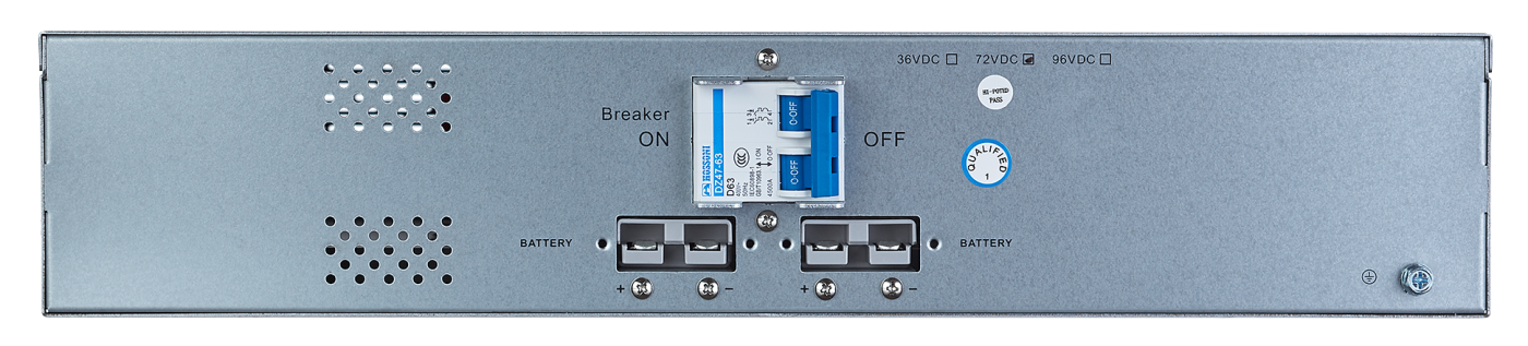 Система оборудована двухполюсным автоматическим выключателем, для удобного и безопасного отключения батарейного модуля от ИБП.